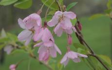 | This perfectly named flowering cherry features clusters of pink blossom hanging like pink shells. | |
